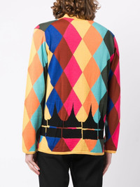 V-neck diamond-print cardigan multicolour wool blend fine knit diamond print V-neck front button fastening long sleeves Imported Composition Wool 63%, Acrylic 37% SIZE & FIT Model measurements Height 6 ft 2 in(1.87 m) Bust/Chest 36.22 in(92 cm) Hips 37.79 in(96 cm) Waist 28.34 in(72 cm) Washing instructions Dry Clean Only