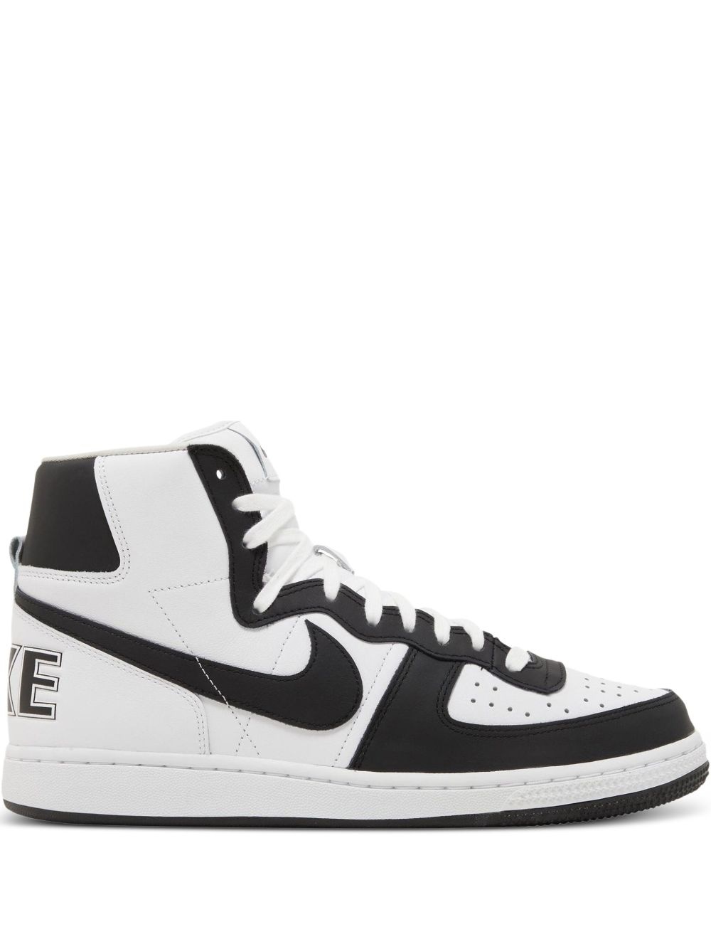 x Comme Des Garcons Terminator "CDG Black" sneakers Highlights - White - Front lace-up fastening - Colour-block panelled design - Branded heel counter - Pull-tab at the heel - Signature swoosh logo detail - Logo patch at the tongue - Perforated toebox - Round toe - Padded ankle - Ankle-length - Flat rubber sole - Release date; february 1st, 2024 - These styles are supplied by a premium and authenticated sneaker marketplace. stocking only the most sought-after footwear, they source and curate some of the most hard to find sneakers from around the world. Imported Composition Sole: Rubber 100% Lining: Fabric 100% Outer: Calf Leather 100%