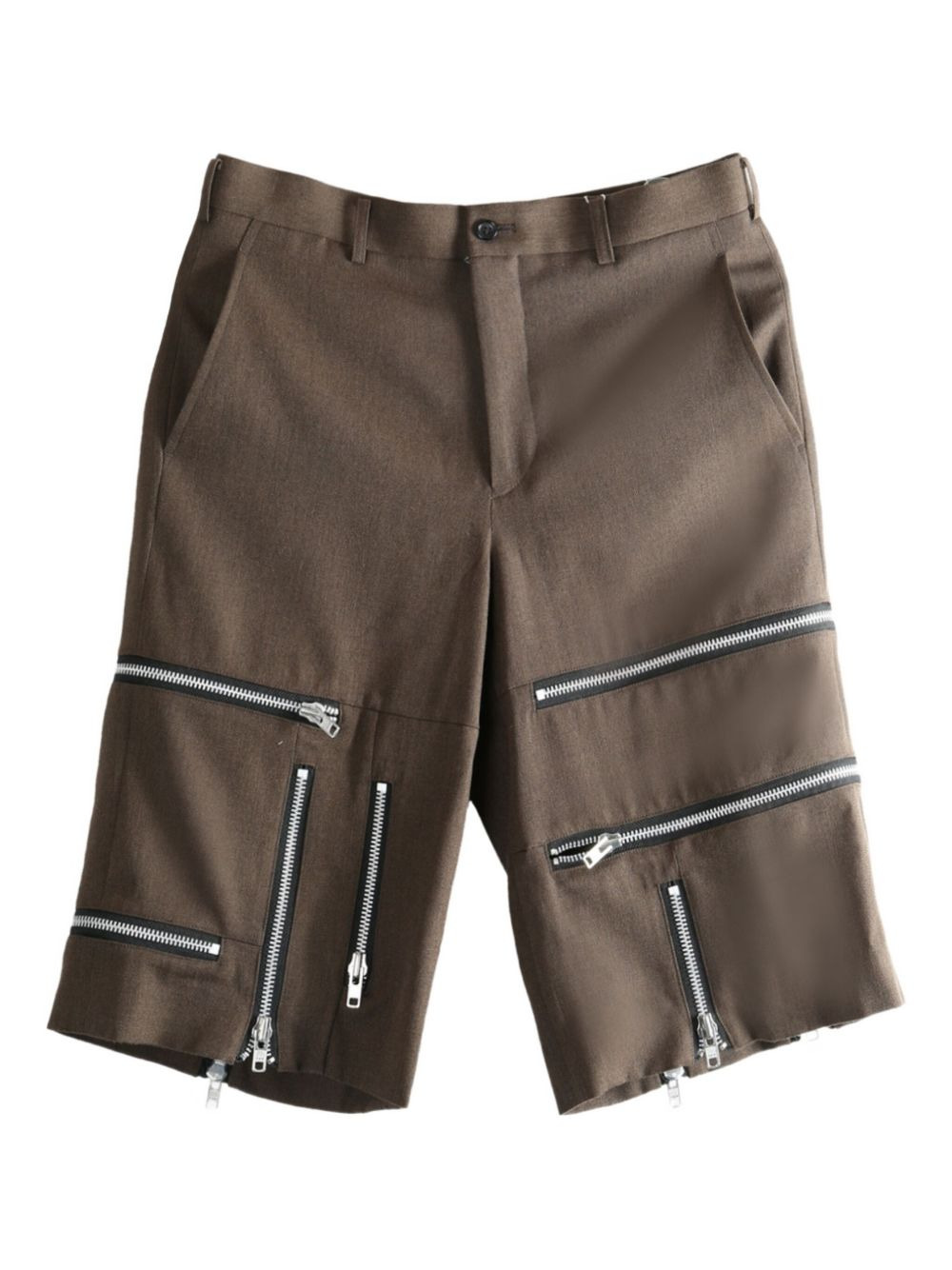 zip-detail wool shorts Highlights - Brown - Wool - Multiple zip details - Straight pockets - Button and zip fastening - Low rise Imported Composition Wool 100% Washing instructions Read Manufacturer Guidelines