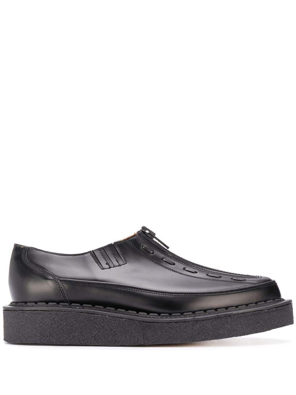 zipped chunky sole loafers black leather front zip fastening pointed toe branded insole chunky sole Made in United Kingdom Composition Outer: Calf Leather 100% Lining: Calf Leather 100% Sole: Rubber 100% SIZE & FIT Measurement HEEL 1.77 in(4.5 cm) Sole height 1.37 in(3.5 cm)