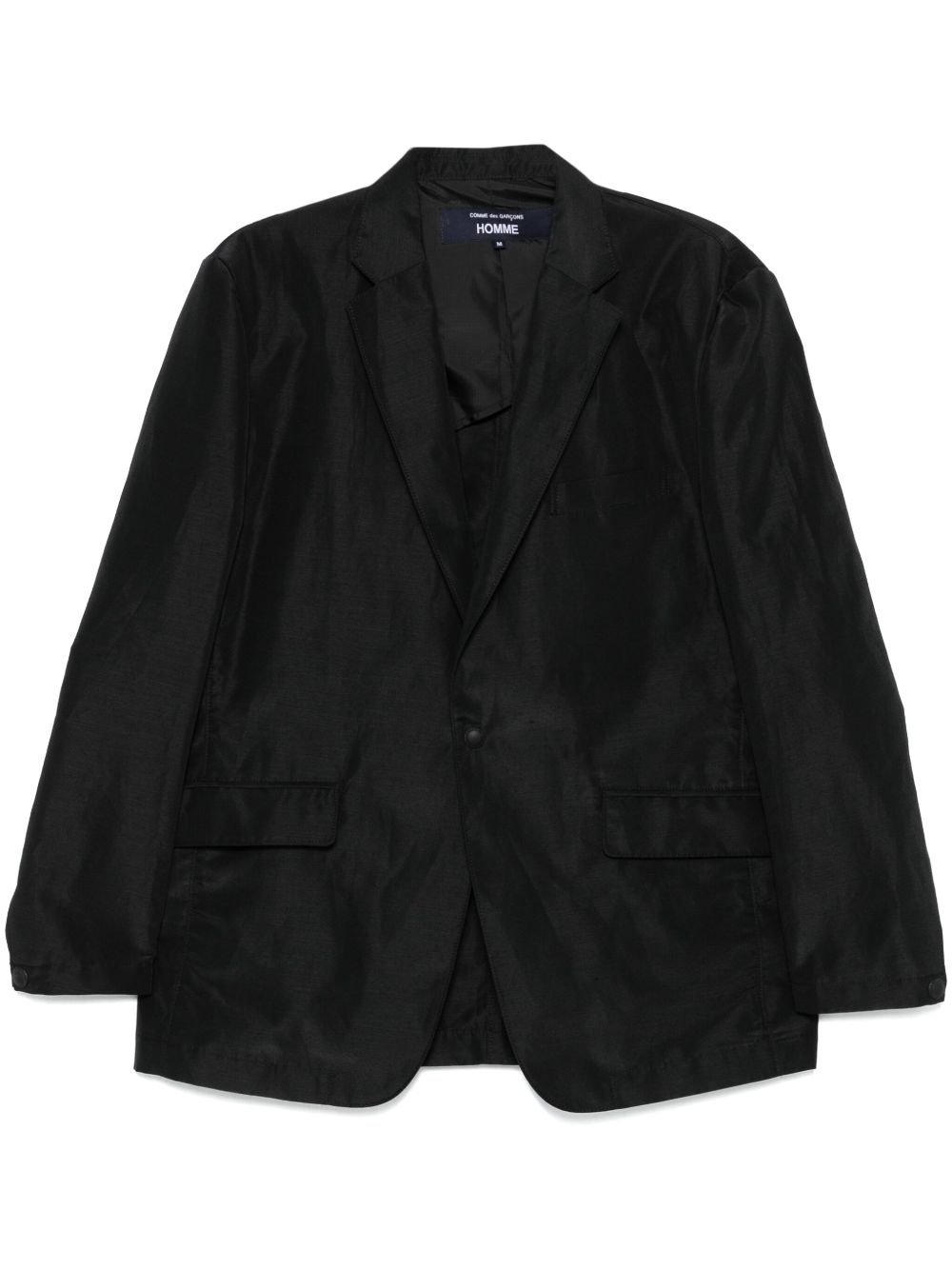 shantung blazer Highlights - Black - Front press-stud fastening - Chest welt pocket - Two side flap pockets - When buying this unisex item, keep in mind that it is graded in standard men's sizing. Imported Composition Outer: Polyester 50%, Linen/Flax 50% Lining: Polyester 100% SIZE & FIT Model measurements Height 6 ft 2 in(1.87 m) Bust/Chest 38.18 in(97 cm) Hips 36.61 in(93 cm) Waist 29.13 in(74 cm) FittingInformation Designed for a regular fit, allowing for a comfortably loose fit throughout the body The vented hem offers movement at the rear Made from a midweight non-stretch fabric