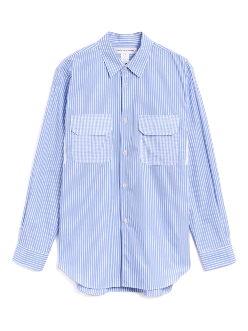striped pocket shirt Highlights - White, light blue and navy blue - Striped - Button fastening - Two chest pockets - Long sleeves - Buttoned cuffs Imported Composition Cotton 100% Washing instructions Read Manufacturer Guidelines