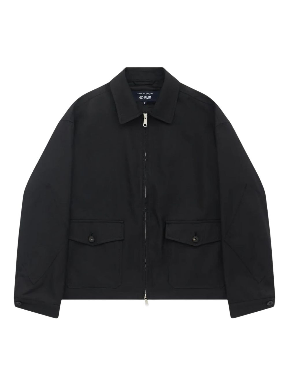 zip-up jacket Highlights - Black - Front zip fastening - Classic collar - Two front buttoned flap pockets - Long sleeves - Buttoned cuffs Imported Composition Cotton 72%, Nylon 28% Washing instructions Read Manufacturer Guidelines