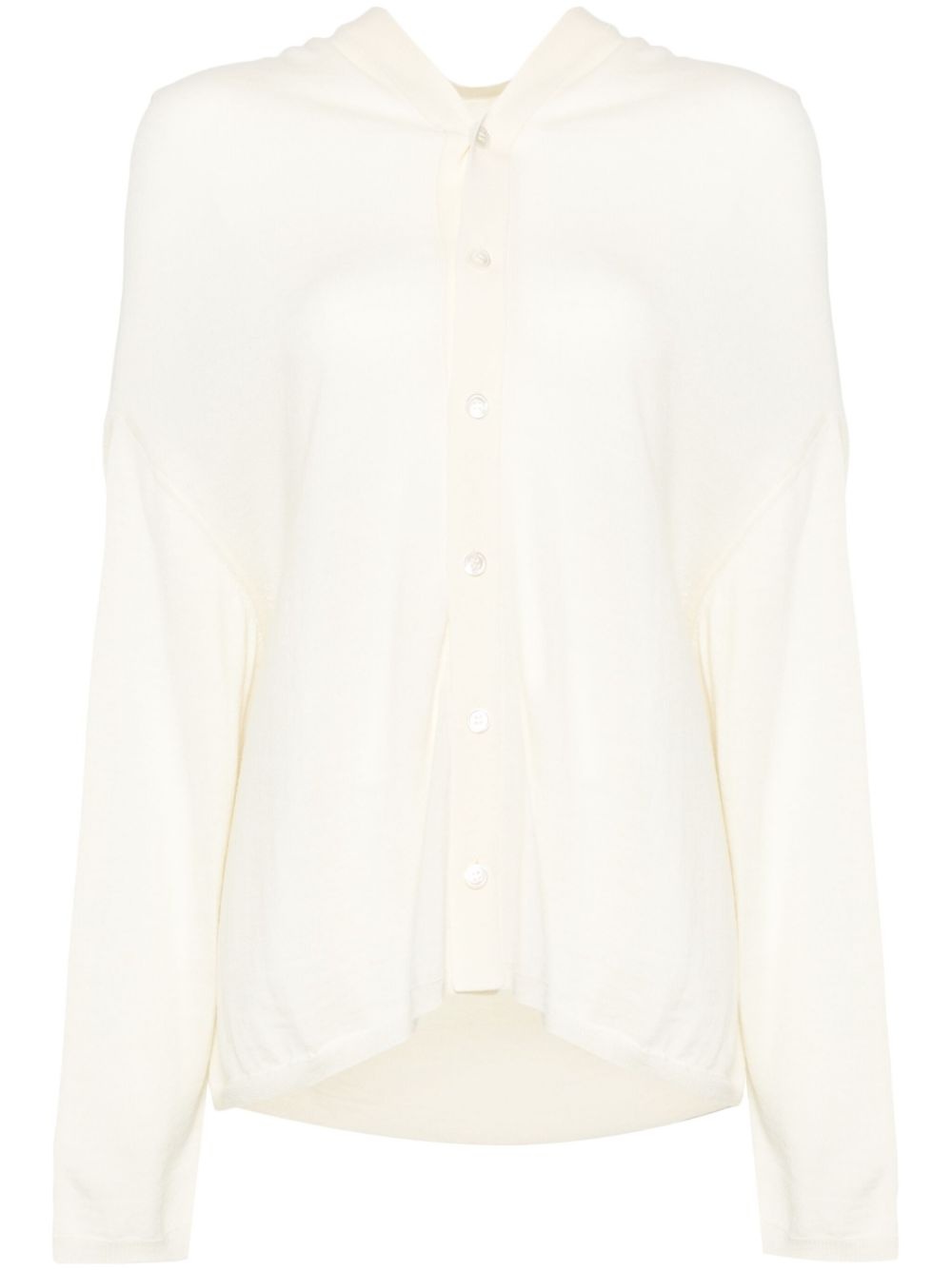 hooded cardigan Highlights - White - Front button fastening - Drop shoulder - Long sleeves - Ribbed trim Imported Composition Wool 100%