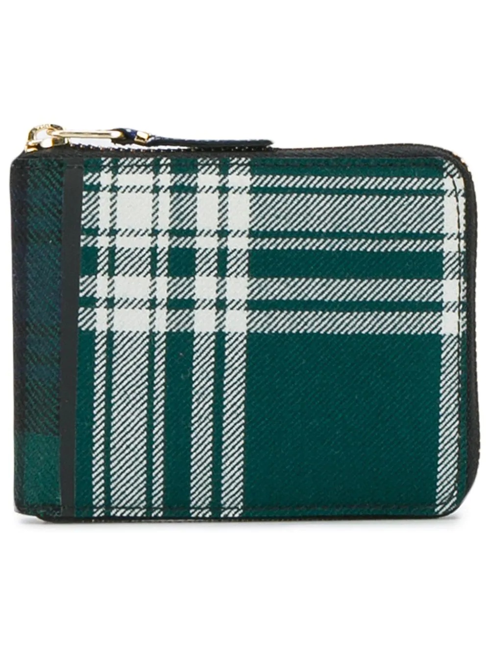 Large Green Tartan Wallet Green wool and leather Large Green Tartan Wallet from Comme Des Garcons Wallet. Imported Composition Lining: Calf Leather 100% Outer: Polyurethane 100%, Wool 100% SIZE & FIT Measurement WIDTH 3.93 in(10 cm) LENGTH 3.34 in(8.5 cm) DEPTH 0.78 in(2 cm)