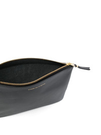 logo-detail leather wallet Highlights - This black comme des garcons wallet classic leather pouch is crafted in spain and features a top zip fastening with gold tone hardware and gold tone logo printing to the front. this is the thinking man's bag, as it's always advisable to have a modern classic tucked under your arm (like this comme des garcons wallet pouch). Imported Composition Outer: Calf Leather 100% SIZE & FIT Model measurements Height 6 ft 1 in(1.85 m) Bust/Chest 37.79 in(96 cm) Hips 37.4 in(95 cm) Waist 30.7 in(78 cm) Measurement LENGTH 8.46 in(21.5 cm) WIDTH 6.29 in(16 cm)