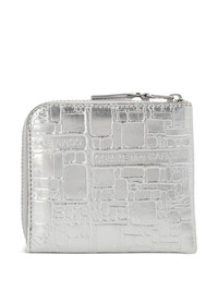 logo-embossed leather wallet Highlights - Silver-tone calf leather 'embossed logo' wallet from comme des garcons wallet featuring a zip fastening, an embossed detail, a front embossed logo stamp and a main internal compartment. Imported Composition Outer: Calf Leather 100% SIZE & FIT Measurement WIDTH 3.93 in(10 cm) LENGTH 4.33 in(11 cm)