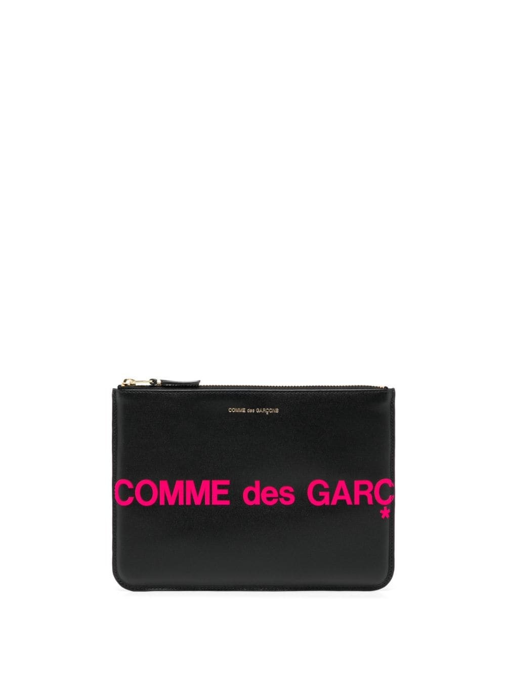 logo-print leather wallet Highlights - Black/fuchsia pink - Leather - Debossed logo to the front - All-over logo print - Top zip fastening - Main compartment - Rectangle shape Imported Composition Leather 100% SIZE & FIT Measurement DEPTH 0.39 in(1 cm) LENGTH 6.29 in(16 cm) WIDTH 8.46 in(21.5 cm)