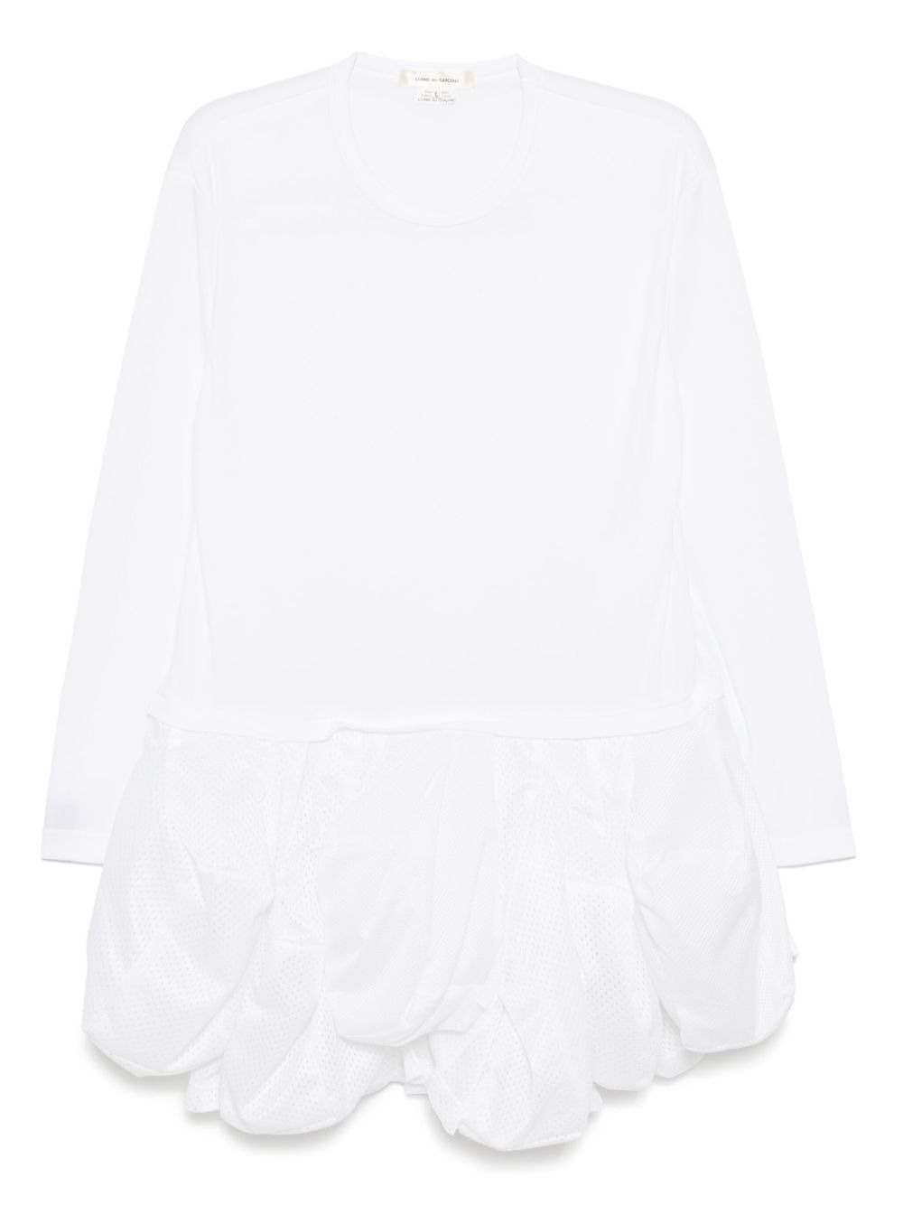 long-sleeved ruffle dress Highlights - White - Crew neck - Long sleeves - Mesh detailing - Ruffle hem Imported Composition Polyester 100% Washing instructions Hand Wash