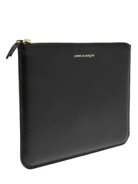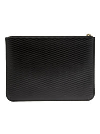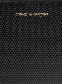 'Luxury Group' purse Black leather 'Luxury Group' purse from Comme Des Garcons Wallet featuring a front centre logo stamp and a gold-tone top zip fastening. Imported Composition Calf Leather 100% SIZE & FIT Measurement WIDTH 6.29 in(16 cm) LENGTH 8.46 in(21.5 cm)