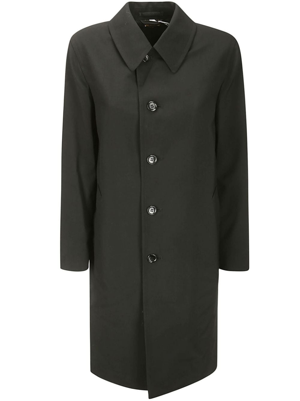 oversized-collar single-breasted coat Highlights - Jet black - Oversized collar - Front button fastening - Long sleeves - Two front welt pockets - Straight hem - Mid-length - Full lining Imported Composition Fabric 100%