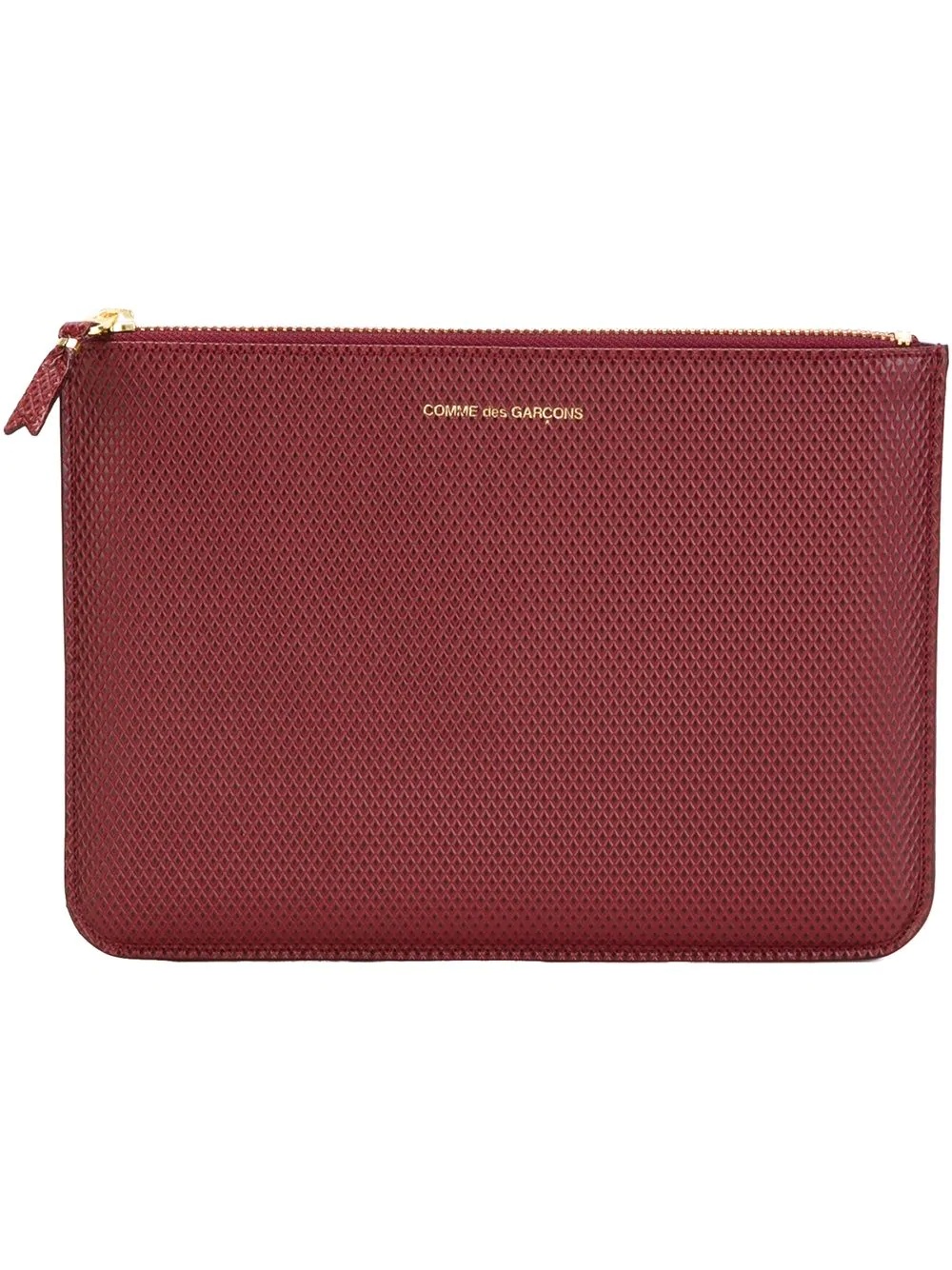 pebbled leather coin pouch Highlights - Burgundy - Calf leather - Pebbled texture - Logo stamp to the front - Top zip fastening - Main compartment - Gold-tone hardware Imported Composition Outer: Calf Leather 100%