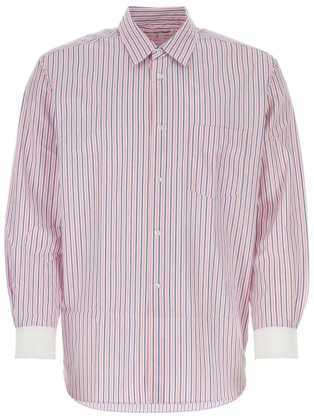 pinstripe-print shirt Highlights - Pink - Cotton - Poplin texture - Pinstripe print - Spread collar - Front button fastening - Long sleeves - Buttoned cuffs - Chest patch pocket - Rear curved hem Made in France Composition Cotton 100% Washing instructions Read Manufacturer Guidelines