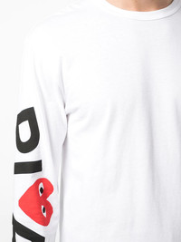 almond-eye long-sleeved T-shirt The distinctive signature design of Rei Kawakubo’s almond-eyed heart print is an iconic trademark of the Comme Des Garcons Play brand. You can join the cult club too with this white cotton almond-eye long-sleeved T-shirt from Comme Des Garcons Play. Featuring a crew neck, long sleeves with a signature almond-eye print, a relaxed fit and a straight hem. Made in Italy Composition Cotton 100% SIZE & FIT Model measurements Height 6 ft 2 in(1.88 m) Bust/Chest 38.18 in(97 cm) Hips 37 in(94 cm) Waist 29.92 in(76 cm) Measurement CHEST 35.03 in(89 cm) Shoulder Width 16.14 in(41 cm) FittingInformation Designed for a relaxed fit, this piece allows for comfort and movement when worn Made from a midweight non-stretch fabric, this piece offers minimal elasticity when worn This piece fits small – take one size up Washing instructions Machine Wash