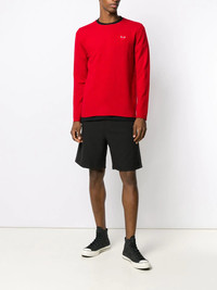 applique heart sweater The distinctive signature design of Rei Kawakubo’s almond-eyed heart print is an iconic trademark of the Comme Des Garcons Play brand. You can join the cult club too with this red wool applique heart sweater from Comme Des Garcons Play featuring a crew neck, long sleeves and an appliqued red heart to the chest. Imported Composition Wool 100% SIZE & FIT Model measurements Height 6 ft 2 in(1.89 m) Bust/Chest 36.22 in(92 cm) Hips 35.82 in(91 cm) Waist 28.74 in(73 cm) FittingInformation This piece fits true to size. We recommend you get your regular size Made with a mid-weight fabric Measurement CHEST 41.33 in(105 cm) SLEEVE LENGTH 25.19 in(64 cm) Shoulder Width 16.53 in(42 cm)