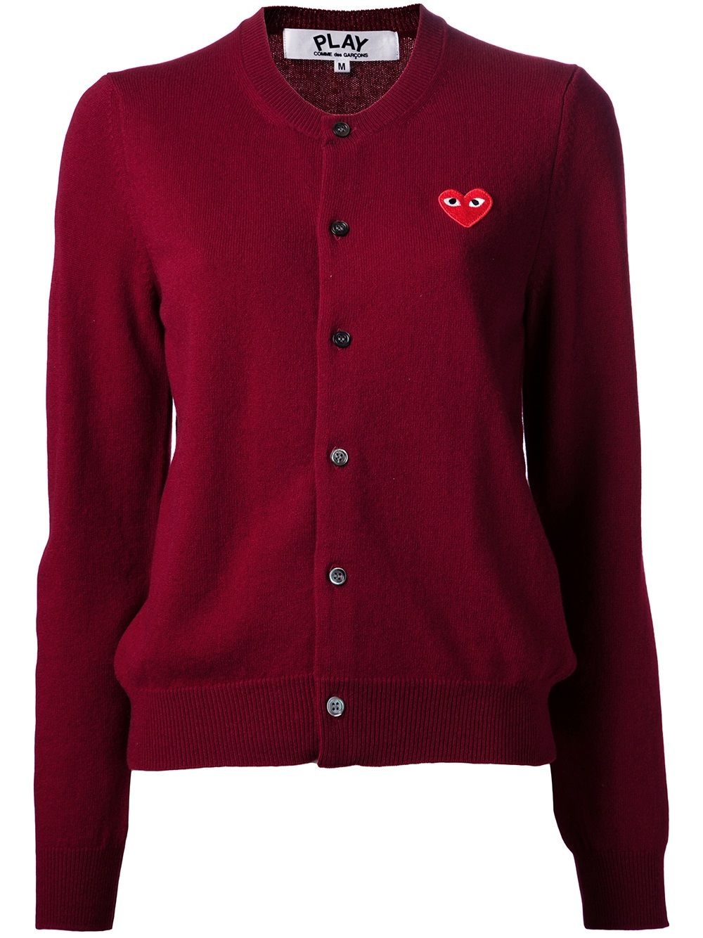 basic cardigan Highlights - Burgundy - Front button placket - Ribbed cuffs and hem - Signature heart print - When buying this unisex item, keep in mind that it is graded in standard men's sizing. Imported Composition Wool 100% Washing instructions Dry Clean Only