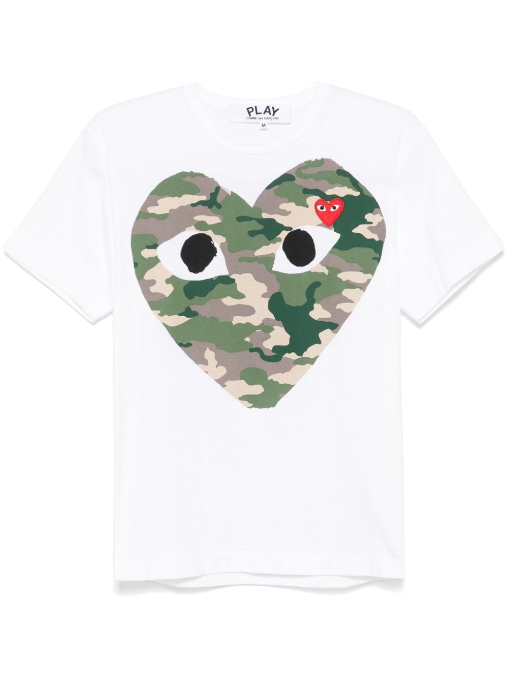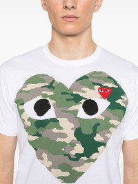 camouflage heart-print T-shirt Highlights - White - Cotton - Jersey texture - Camouflage heart-print to the front - Crew neck - Short sleeves - Logo patch at the chest - Straight hem - When buying this unisex item, keep in mind that it is graded in standard men's sizing. Imported Composition Cotton 100% SIZE & FIT Model measurements Height 5 ft 11 in(1.8 m) Bust/Chest 32.67 in(83 cm) Hips 36.22 in(92 cm) Waist 24.4 in(62 cm) FittingInformation This piece is unisex – expect a slim fit if you usually select men's sizing; expect a looser fit if you usually select women's sizes Made from a midweight non-stretch fabric, this piece offers minimal elasticity when worn Measurement SLEEVE LENGTH 6.69 in(17 cm) LENGTH 21.25 in(54 cm) BUST 30.7 in(78 cm) Shoulder Width 13.38 in(34 cm)