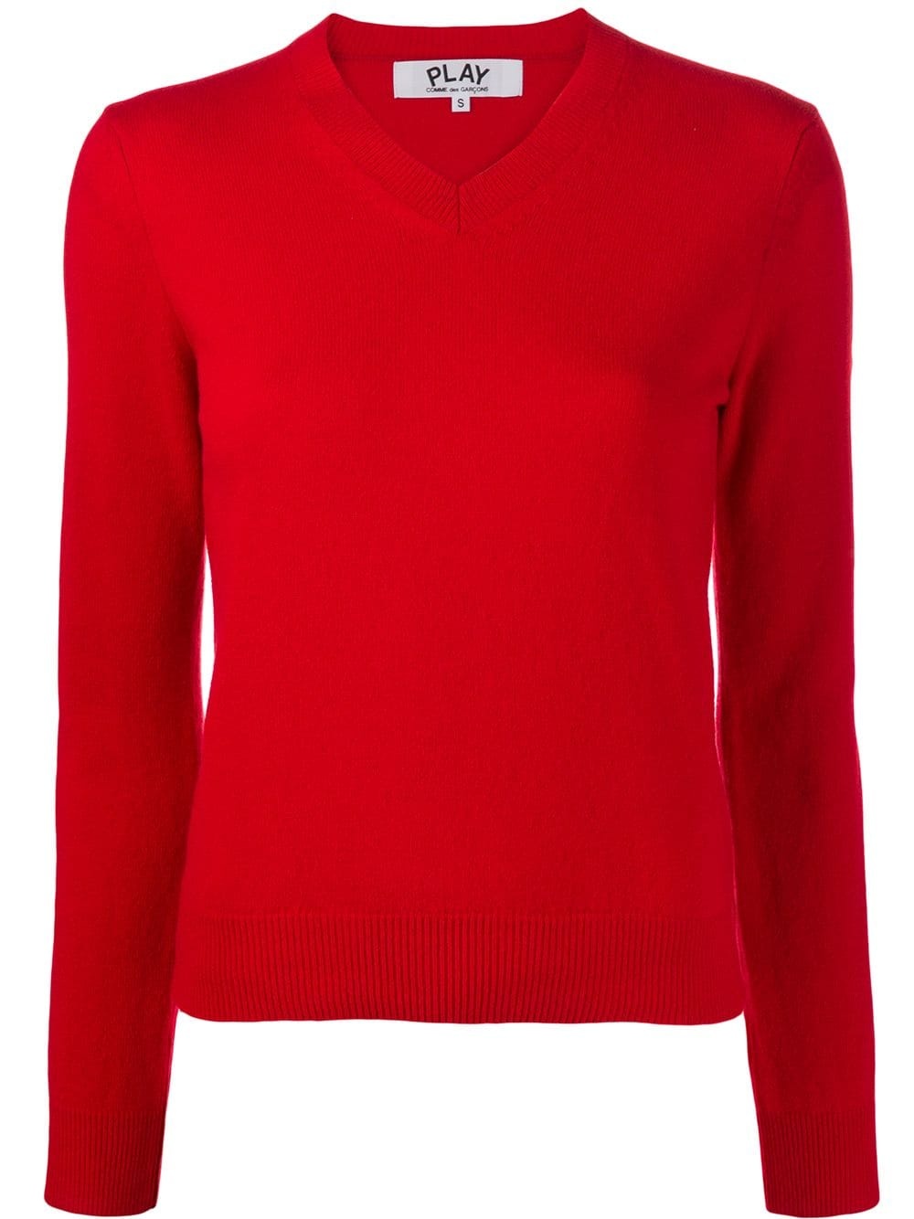 classic knit sweater Laid-back style with a playful twist is the look at Comme Des Garcons Play. Presenting this red wool classic knit sweater from Comme Des Garcons Play. Featuring a v-neck, long sleeves and a ribbed hem and cuffs. Imported Composition Wool 100% SIZE & FIT Model measurements Height 5 ft 9 in(1.76 m) Bust/Chest 31.88 in(81 cm) Hips 37 in(94 cm) Waist 25.19 in(64 cm) FittingInformation This piece fits true to size. We recommend you get your regular size Made with a mid-weight stretch fabric Washing instructions Dry Clean Only