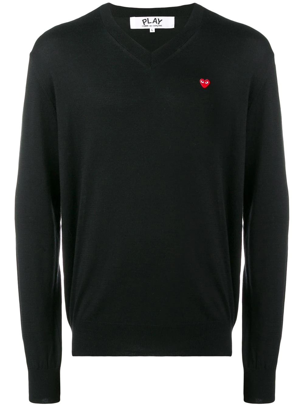 contrast logo jumper Black cotton contrast logo jumper from Comme Des Garcons Play. Imported Composition Cotton 100% SIZE & FIT Model measurements Height 6 ft 2 in(1.87 m) Bust/Chest 38.18 in(97 cm) Hips 36.61 in(93 cm) Waist 29.13 in(74 cm) Measurement CHEST 46.85 in(119 cm) SLEEVE LENGTH 27.55 in(70 cm) Shoulder Width 18.89 in(48 cm)