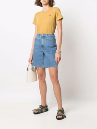 cotton embroidered-logo T-shirt yellow cotton logo patch at the chest round neck short sleeves straight hem Imported Composition Cotton 100% SIZE & FIT Model measurements Height 5 ft 9 in(1.76 m) Bust/Chest 33.07 in(84 cm) Hips 34.64 in(88 cm) Waist 25.59 in(65 cm) Measurement BUST 31.49 in(80 cm) FittingInformation This piece fits true to size. We recommend you get your regular size Cut for a slim fit Made with a mid-weight fabric Washing instructions Machine Wash