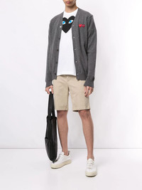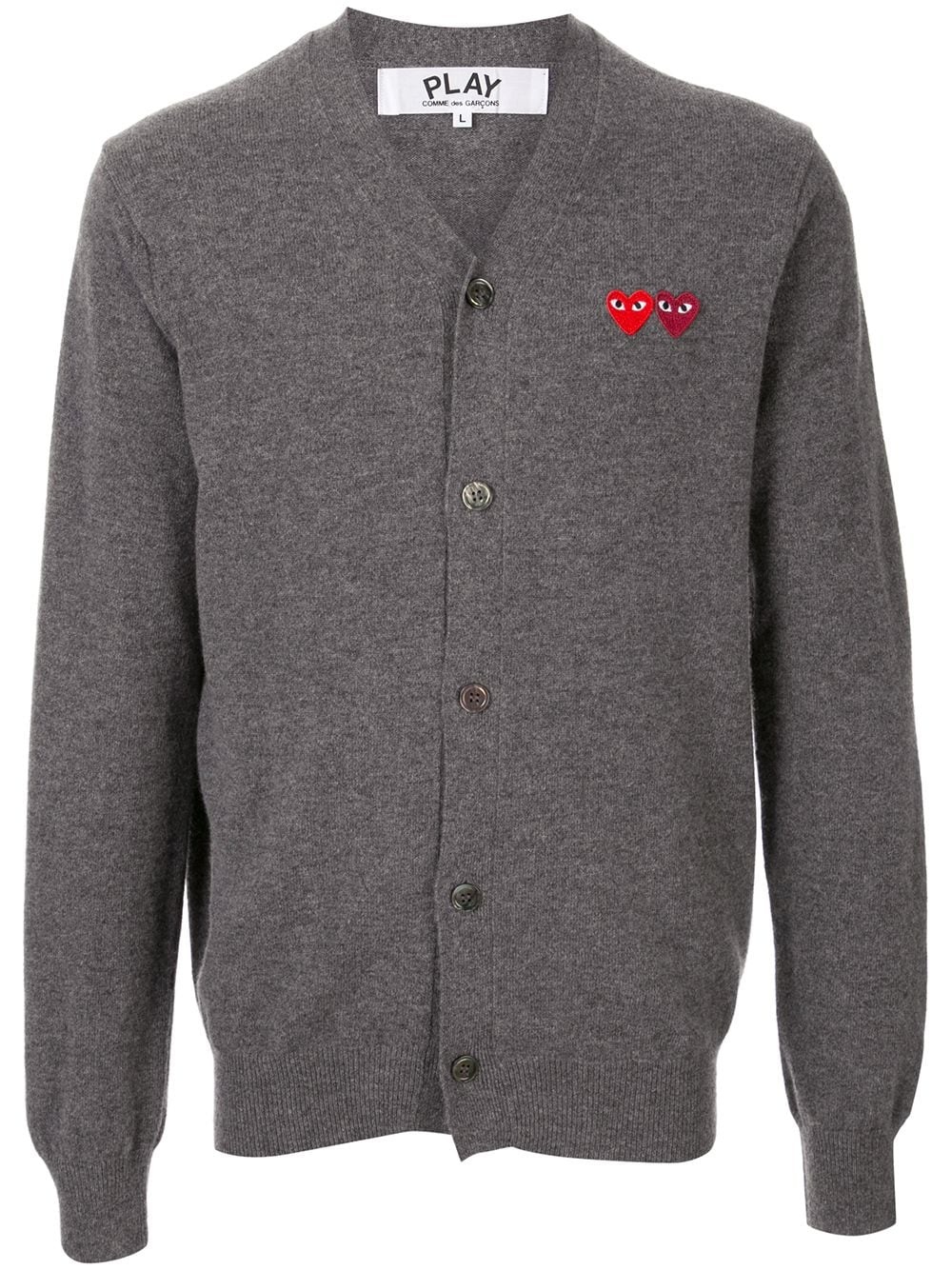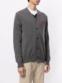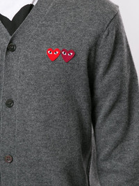 embroidered logo cardigan Grey wool embroidered logo cardigan from Comme Des Garcons Play featuring a v-neck, a front button fastening, long sleeves and a straight hem. Made in Italy Composition Wool 100% SIZE & FIT Model measurements Height 6 ft 1 in(1.86 m) Bust/Chest 34.64 in(88 cm) Hips 36.22 in(92 cm) Waist 27.16 in(69 cm) Washing instructions Dry Clean Only