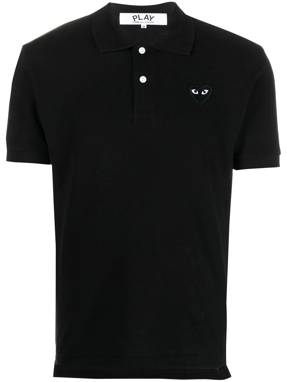 embroidered logo polo shirt Black cotton embroidered logo polo shirt from Comme Des Garcons Play. Imported Composition Cotton 100% SIZE & FIT Model measurements Height 6 ft 2 in(1.87 m) Bust/Chest 36.41 in(92.5 cm) Hips 37 in(94 cm) Waist 29.52 in(75 cm) FittingInformation Designed for a relaxed fit, this polo shirt offers comfort and movement Made from a midweight non-stretch fabric, this piece offers minimal elasticity when worn This piece fits small – take one size up Washing instructions Machine Wash