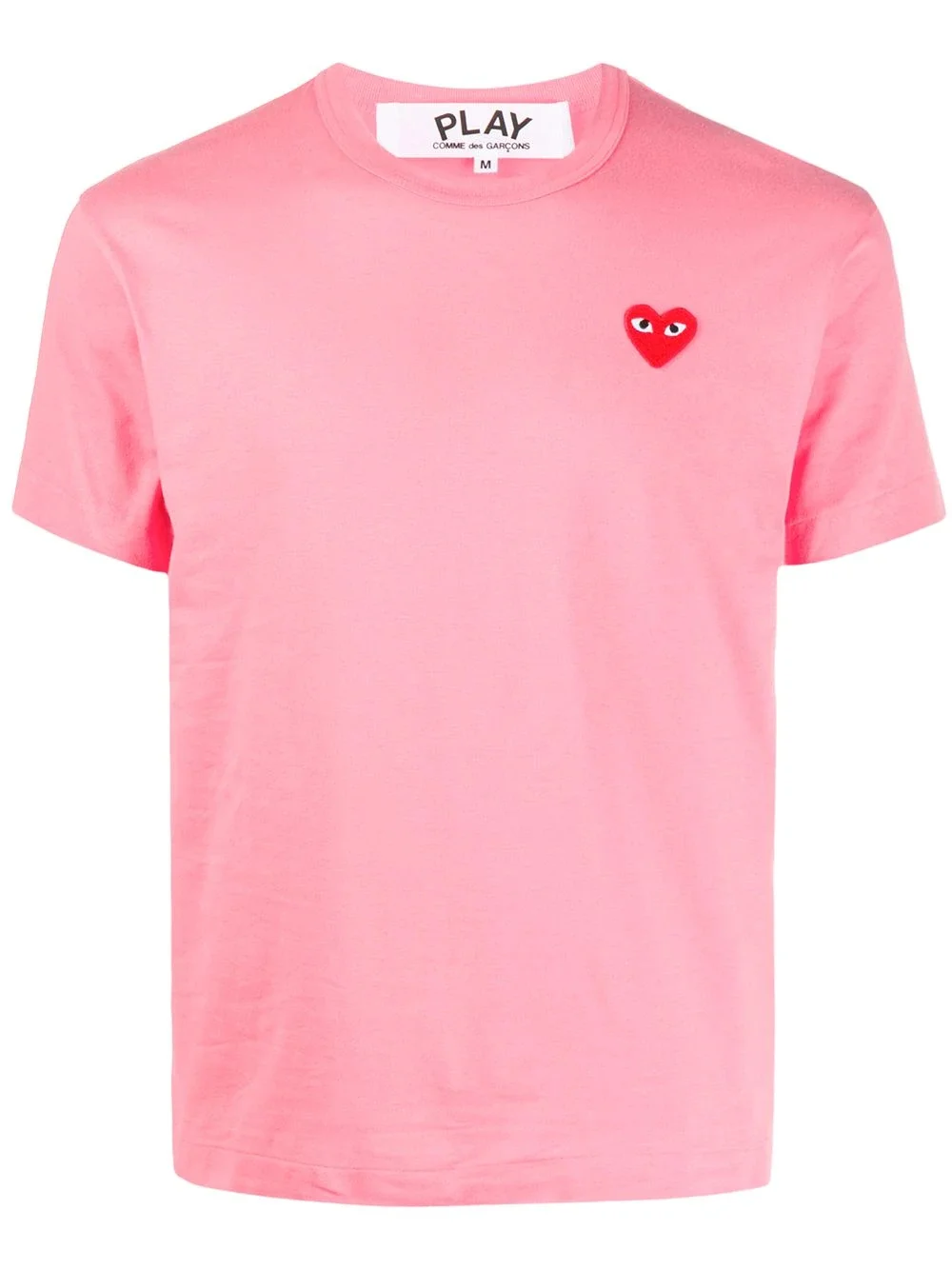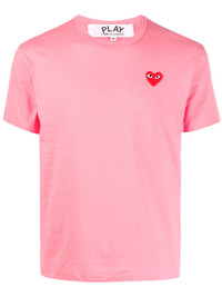 heart embroidered round neck T-shirt Pink and red cotton heart embroidered round neck T-shirt from Comme Des Garcons Play featuring an embroidered logo to the front, a straight hem, a round neck and short sleeves. Imported Composition Cotton 100% SIZE & FIT Model measurements Height 6 ft 2 in(1.89 m) Bust/Chest 36.22 in(92 cm) Hips 37.79 in(96 cm) Waist 29.52 in(75 cm) Measurement Shoulder Width 16.14 in(41 cm) FittingInformation Designed for a relaxed fit, this piece allows for comfort and movement when worn Made from a midweight non-stretch fabric, this piece offers minimal elasticity when worn This piece fits small – take one size up Washing instructions Hand Wash
