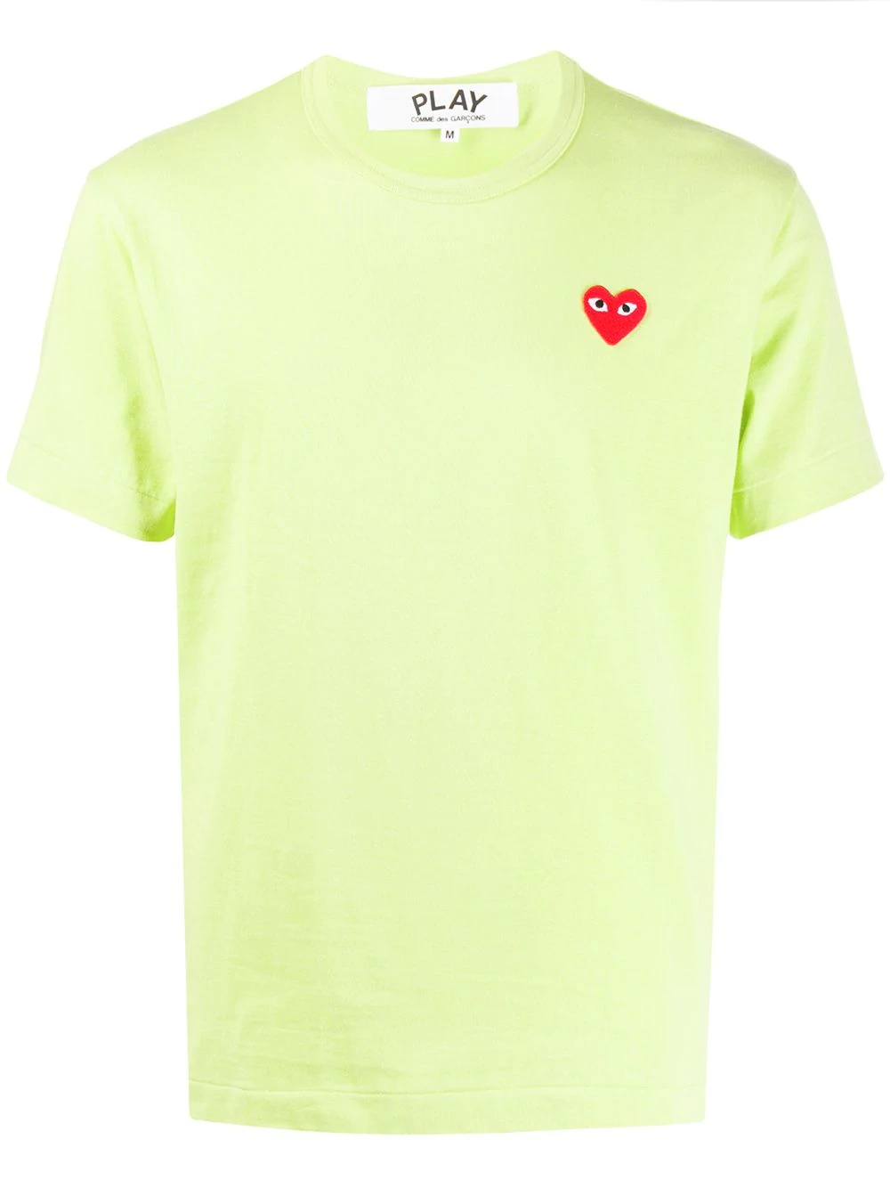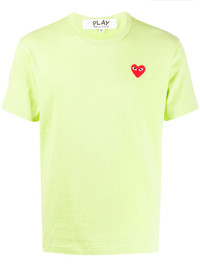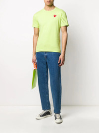 heart embroidered round neck T-shirt Light green and red cotton heart embroidered round neck T-shirt from Comme Des Garcons Play featuring an embroidered logo to the front, a straight hem, a round neck and short sleeves. Imported Composition Cotton 100% SIZE & FIT Model measurements Height 6 ft 2 in(1.89 m) Bust/Chest 36.22 in(92 cm) Hips 37.79 in(96 cm) Waist 29.52 in(75 cm) Measurement Shoulder Width 16.14 in(41 cm) FittingInformation Designed for a relaxed fit, this piece allows for comfort and movement when worn Made from a midweight non-stretch fabric, this piece offers minimal elasticity when worn This piece fits small – take one size up Washing instructions Hand Wash