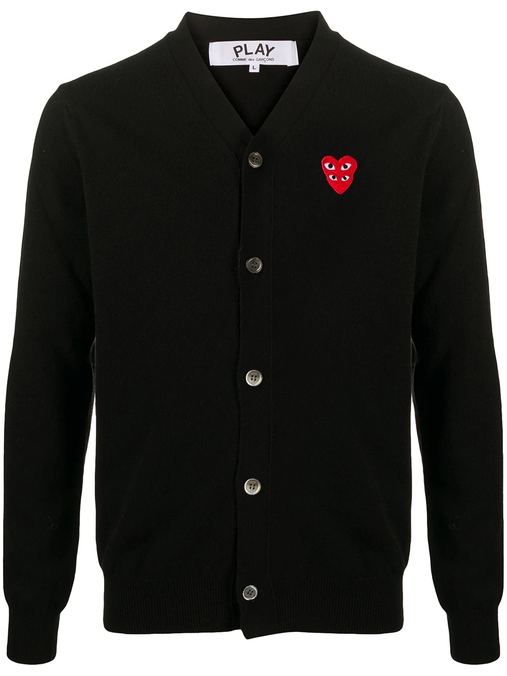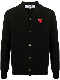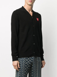 heart logo button-down cardigan black wool embroidered signature red heart button fastening V-neck long sleeves fitted-cuff sleeves Imported Composition Wool 100% SIZE & FIT Model measurements Height 6 ft 2 in(1.89 m) Bust/Chest 37.79 in(96 cm) Hips 37 in(94 cm) Waist 29.92 in(76 cm) Measurement CHEST 31.49 in(80 cm) SLEEVE LENGTH 24.8 in(63 cm) Shoulder Width 14.48 in(36.8 cm) Washing instructions Dry Clean Only