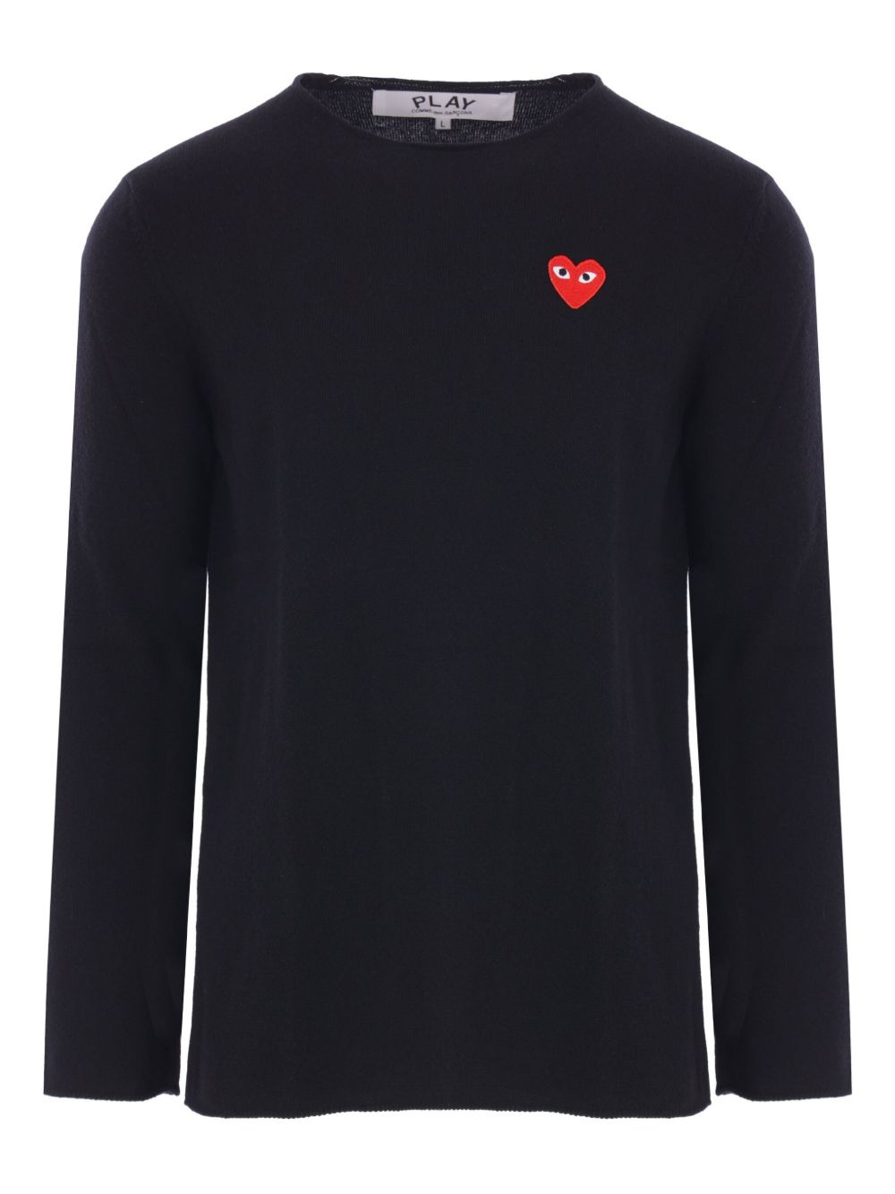 heart-logo wool sweater Highlights - Black - Wool fabric - Round neck - Red heart logo embellished Imported Composition Wool 100% Washing instructions Read Manufacturer Guidelines