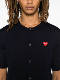 heart-patch cardigan Highlights - Navy blue - Wool - Knitted construction - Heart patch - Front button fastening - Crew neck - Short sleeves - Ribbed cuffs and hem - When buying this unisex item, keep in mind that it is graded in standard men's sizing. Imported Composition Wool 100% SIZE & FIT Model measurements Height 5 ft 9 in(1.75 m) Bust/Chest 30.7 in(78 cm) Hips 35.03 in(89 cm) Waist 23.62 in(60 cm) FittingInformation This unisex piece is designed for a relaxed fit whether you usually select women's or men's sizes The ribbed hem offers a close, comfortable fit Made with a lightweight knit, this piece offers some stretch Washing instructions Dry Clean Only
