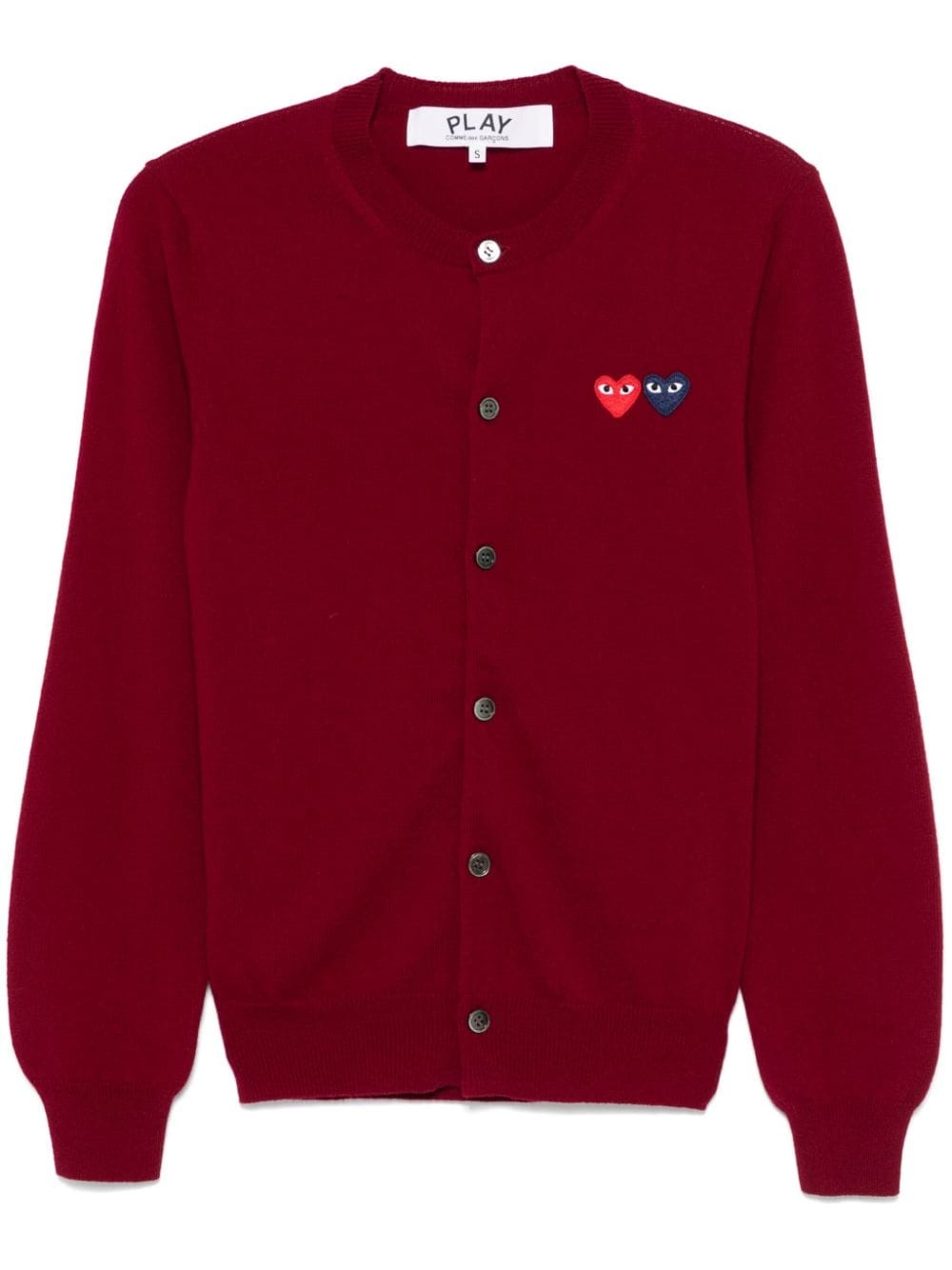 heart-patch cardigan Highlights - Burgundy - Wool - Knitted construction - Signature double heart patch - Front button fastening - Crew neck - Long sleeves - Ribbed cuffs and hem - When buying this unisex item, keep in mind that it is graded in standard men's sizing. Imported Composition Wool 100% SIZE & FIT Model measurements Height 5 ft 11 in(1.8 m) Bust/Chest 32.67 in(83 cm) Hips 36.22 in(92 cm) Waist 24.4 in(62 cm) FittingInformation This piece is unisex – expect a slim fit if you usually select men's sizing; expect a looser fit if you usually select women's sizes The ribbed hem offers a close, comfortable fit Made with a midweight knit, this piece offers some stretch