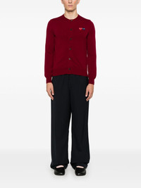 heart-patch cardigan Highlights - Burgundy - Wool - Knitted construction - Signature double heart patch - Front button fastening - Crew neck - Long sleeves - Ribbed cuffs and hem - When buying this unisex item, keep in mind that it is graded in standard men's sizing. Imported Composition Wool 100% SIZE & FIT Model measurements Height 5 ft 11 in(1.8 m) Bust/Chest 32.67 in(83 cm) Hips 36.22 in(92 cm) Waist 24.4 in(62 cm) FittingInformation This piece is unisex – expect a slim fit if you usually select men's sizing; expect a looser fit if you usually select women's sizes The ribbed hem offers a close, comfortable fit Made with a midweight knit, this piece offers some stretch Washing instructions Dry Clean Only