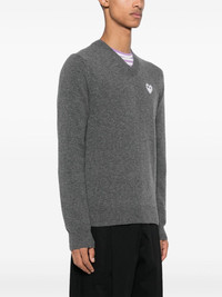 Heart-patch V-neck wool jumper