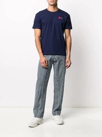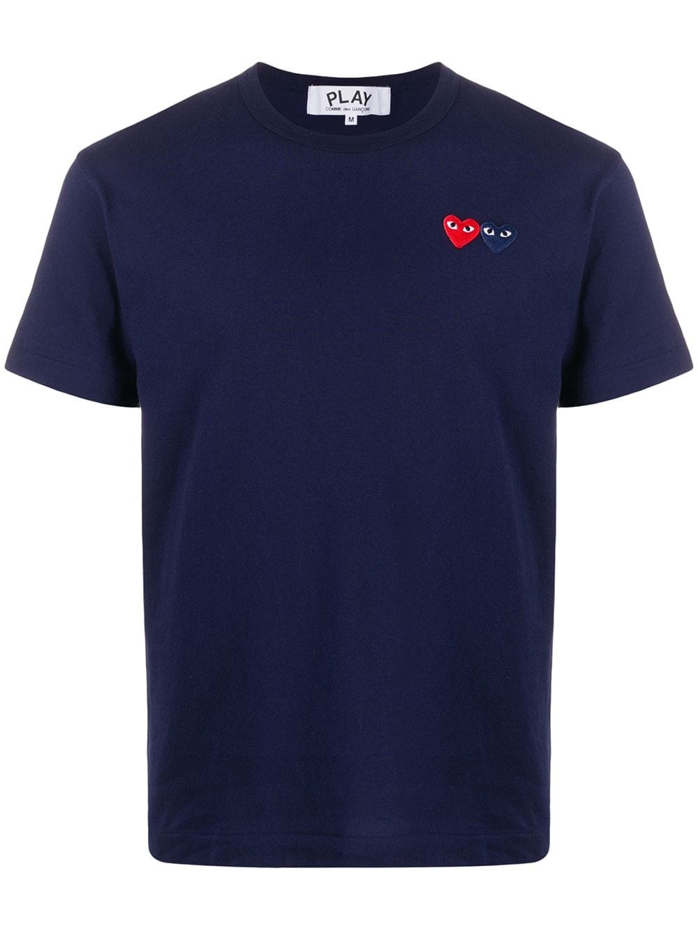 heart patch short sleeve T-shirt Navy cotton heart patch short sleeve T-shirt from Comme Des Garcons Play featuring a contrast embroidered logo at the chest, a crew neck, short sleeves and a straight hem. Imported Composition Cotton 100% SIZE & FIT Model measurements Height 6 ft 1 in(1.85 m) Bust/Chest 37.79 in(96 cm) Hips 37.4 in(95 cm) Waist 30.7 in(78 cm) Measurement Shoulder Width 16.53 in(42 cm) FittingInformation This piece fits true to size. We recommend you get your regular size Cut for a relaxed fit Made with a mid-weight fabric