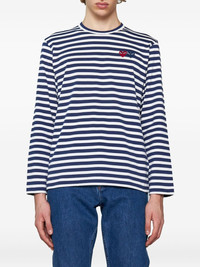 heart-patch striped cotton T-shirt Highlights - Navy blue/white - Cotton - Jersey texture - Horizontal stripe pattern - Crew neck - Long sleeves - Signature heart patch - Straight hem - When buying this unisex item, keep in mind that it is graded in standard men's sizing. Imported Composition Cotton 100% SIZE & FIT Measurement CHEST 35.43 in(90 cm) SLEEVE LENGTH 23.22 in(59 cm) LENGTH 25.59 in(65 cm) Shoulder Width 16.53 in(42 cm)