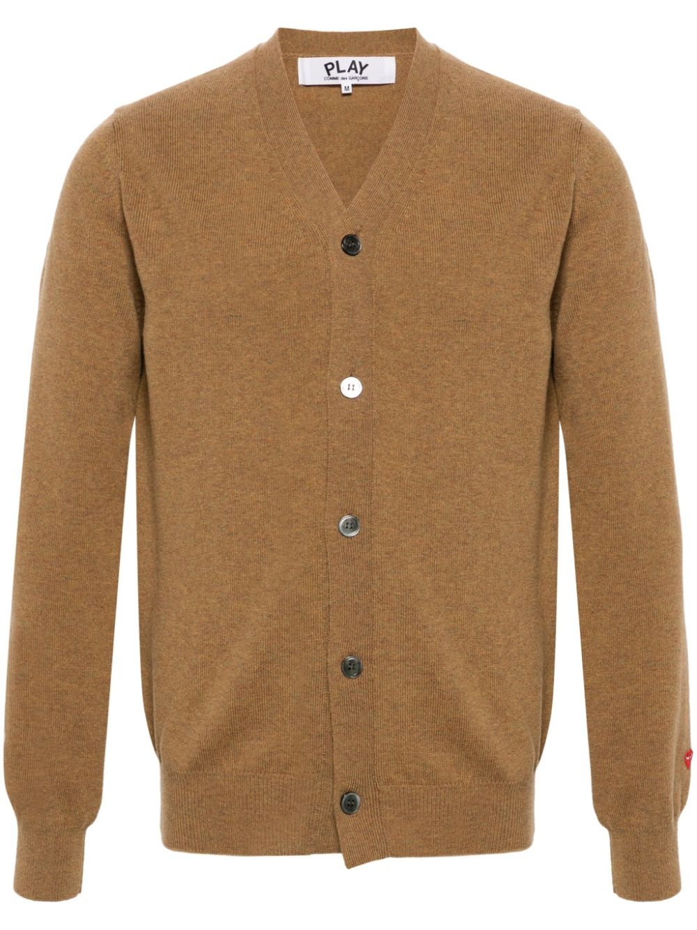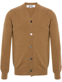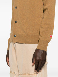 heart-patch wool cardigan Highlights - Camel brown - Wool - Fine knit - Signature heart patch - Ribbed trim - V-neck - Front button fastening - Long sleeves - Straight hem - When buying this unisex item, keep in mind that it is graded in standard men's sizing. Imported Composition Wool 100% SIZE & FIT Model measurements Height 5 ft 10 in(1.77 m) Bust/Chest 33.07 in(84 cm) Hips 37 in(94 cm) Waist 24.8 in(63 cm) FittingInformation This unisex piece is designed for a relaxed fit whether you usually select women's or men's sizes Made with a midweight knit, this piece offers some stretch