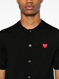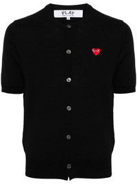 heart-patch wool cardigan Highlights - Black - Wool - Knitted construction - Ribbed trim - Signature heart patch - Crew neck - Front button fastening - Short sleeves - Straight hem - When buying this unisex item, keep in mind that it is graded in standard men's sizing. Imported Composition Wool 100% SIZE & FIT Model measurements Height 5 ft 11 in(1.8 m) Bust/Chest 32.67 in(83 cm) Hips 36.22 in(92 cm) Waist 24.4 in(62 cm) FittingInformation This unisex piece is designed for a slim fit whether you usually select women's or men's sizes The ribbed hem offers a close, comfortable fit Made with a lightweight knit, this piece offers some stretch