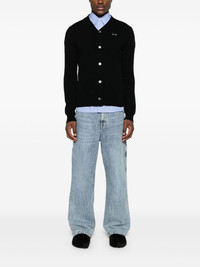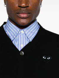 heart-patch wool cardigan Highlights - Black - Wool - Knitted construction - Signature heart patch - V-neck - Front button fastening - Long sleeves - Ribbed cuffs and hem - When buying this unisex item, keep in mind that it is graded in standard men's sizing. Imported Composition Wool 100% SIZE & FIT Model measurements Height 5 ft 9 in(1.75 m) Bust/Chest 34.64 in(88 cm) Hips 36.61 in(93 cm) Waist 26.37 in(67 cm) FittingInformation This piece is unisex – expect a slim fit if you usually select men's sizing; expect a looser fit if you usually select women's sizes The ribbed hem offers a close, comfortable fit Made with a midweight knit, this piece offers some stretch Measurement BUST 34.64 in(88 cm)