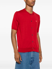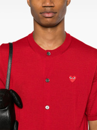 heart-patch wool cardigan Highlights - Rose red - Wool - Knitted construction - Ribbed trim - Signature heart patch - Crew neck - Front button fastening - Short sleeves - Straight hem - When buying this unisex item, keep in mind that it is graded in standard men's sizing. Imported Composition Wool 100% SIZE & FIT Model measurements Height 5 ft 11 in(1.8 m) Bust/Chest 32.67 in(83 cm) Hips 36.22 in(92 cm) Waist 24.4 in(62 cm) FittingInformation This unisex piece is designed for a relaxed fit whether you usually select women's or men's sizes The ribbed hem offers a close, comfortable fit Made with a midweight knit, this piece offers some stretch