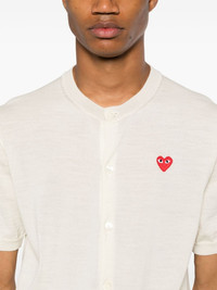 Heart-patch wool cardigan Highlights - Off-white - Wool - Knitted construction - Signature heart patch - Crew neck - Front button fastening - Short sleeves - Ribbed cuffs and hem - When buying this unisex item, keep in mind that it is graded in standard men's sizing. Imported Composition Wool 100% SIZE & FIT Model measurements Height 5 ft 9 in(1.75 m) Bust/Chest 34.64 in(88 cm) Hips 36.61 in(93 cm) Waist 26.37 in(67 cm) FittingInformation This unisex piece is designed for a relaxed fit whether you usually select women's or men's sizes The ribbed hem offers a close, comfortable fit Made with a lightweight knit, this piece offers some stretch