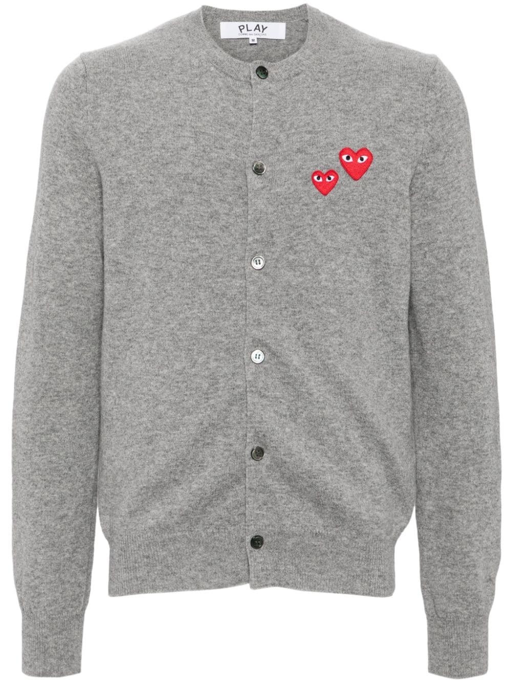 heart-patch wool cardigan Highlights - Grey/red - Wool - Knitted construction - Front button fastening - Crew neck - Signature heart patch - Long sleeves - Ribbed cuffs and hem - Straight hem - When buying this unisex item, keep in mind that it is graded in standard men's sizing. Imported Composition Wool 100% SIZE & FIT Model measurements Height 6 ft 3 in(1.9 m) Bust/Chest 35.03 in(89 cm) Hips 36.61 in(93 cm) Waist 29.13 in(74 cm) Measurement SLEEVE LENGTH 23.62 in(60 cm) LENGTH 22.44 in(57 cm) BUST 34.64 in(88 cm) Shoulder Width 13.38 in(34 cm) FittingInformation This piece is unisex – expect a slim fit if you usually select men's sizing; expect a looser fit if you usually select women's sizes Made with a midweight knit, this piece offers some stretch Washing instructions Dry Clean Only