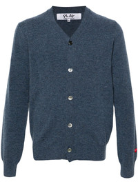 heart-patch wool cardigan Highlights - Navy blue - Wool - Fine knit - Melange effect - Signature heart patch - Ribbed trim - V-neck - Front button fastening - Long sleeves - Straight hem - When buying this unisex item, keep in mind that it is graded in standard men's sizing. Imported Composition Wool 100% SIZE & FIT Model measurements Height 5 ft 10 in(1.77 m) Bust/Chest 33.07 in(84 cm) Hips 37 in(94 cm) Waist 24.8 in(63 cm) FittingInformation This unisex piece is designed for a relaxed fit whether you usually select women's or men's sizes Made with a midweight knit, this piece offers some stretch