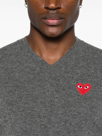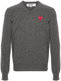 heart-patch wool jumper Highlights - Medium grey - Wool - Knitted construction - Melange effect - Signature heart patch - Ribbed v-neck - Long sleeves - Ribbed cuffs and hem - When buying this unisex item, keep in mind that it is graded in standard men's sizing. Imported Composition Wool 100% SIZE & FIT Model measurements Height 5 ft 9 in(1.75 m) Bust/Chest 34.64 in(88 cm) Hips 36.61 in(93 cm) Waist 26.37 in(67 cm) FittingInformation This piece is unisex – expect a slim fit if you usually select men's sizing; expect a looser fit if you usually select women's sizes The ribbed hem offers a close, comfortable fit Made with a midweight knit, this piece offers some stretch