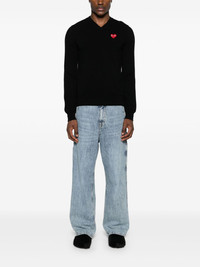 Heart-patch wool jumper Highlights - Black - Wool - Knitted construction - Signature heart patch - V-neck - Long sleeves - Ribbed cuffs and hem - When buying this unisex item, keep in mind that it is graded in standard men's sizing. Imported Composition Wool 100% SIZE & FIT Model measurements Height 5 ft 9 in(1.75 m) Bust/Chest 34.64 in(88 cm) Hips 36.61 in(93 cm) Waist 26.37 in(67 cm) FittingInformation This piece is unisex – expect a slim fit if you usually select men's sizing; expect a looser fit if you usually select women's sizes The ribbed hem offers a close, comfortable fit Made with a midweight knit, this piece offers some stretch