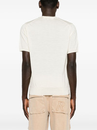 heart-patch wool jumper Highlights - White - Wool - Fine knit - Signature heart patch - Ribbed v-neck - Short sleeves - Ribbed cuffs and hem - Straight hem - When buying this unisex item, keep in mind that it is graded in standard men's sizing. Imported Composition Wool 100% SIZE & FIT Model measurements Height 5 ft 10 in(1.77 m) Bust/Chest 33.07 in(84 cm) Hips 37 in(94 cm) Waist 24.8 in(63 cm) FittingInformation This unisex piece is designed for a relaxed fit whether you usually select women's or men's sizes Made with a midweight knit, this piece offers some stretch