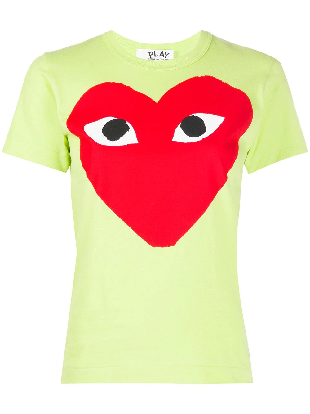 heart print round neck T-shirt Light green and red cotton heart print round neck T-shirt from Comme Des Garcons Play featuring a heart print, a straight hem, a round neck and short sleeves. Imported Composition Cotton 100% SIZE & FIT Model measurements Height 5 ft 9 in(1.75 m) Bust/Chest 32.67 in(83 cm) Hips 36.22 in(92 cm) Waist 24.8 in(63 cm) Measurement BUST 30.7 in(78 cm) LENGTH 20.86 in(53 cm) SLEEVE LENGTH 6.69 in(17 cm) Shoulder Width 12.2 in(31 cm) FittingInformation Designed for a relaxed fit, this piece allows for comfort and movement when worn Made from a midweight non-stretch fabric, this piece offers minimal elasticity when worn This piece fits small – take one size up Washing instructions Hand Wash