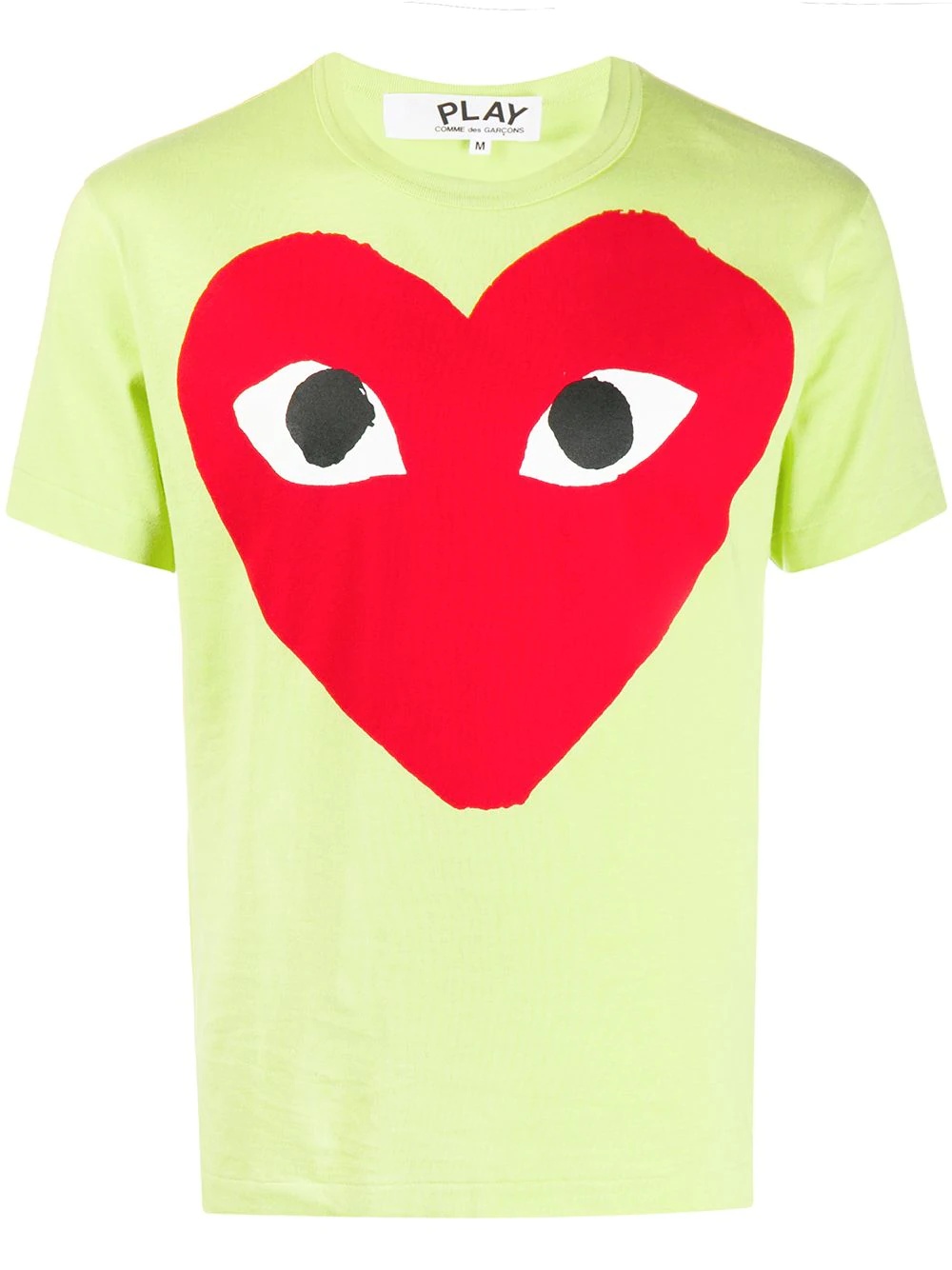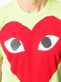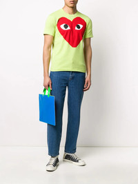 heart print round neck T-shirt Light green and red cotton heart print round neck T-shirt from Comme Des Garcons Play featuring a heart print, a straight hem, a round neck and short sleeves. Imported Composition Cotton 100% SIZE & FIT Model measurements Height 6 ft 2 in(1.89 m) Bust/Chest 36.22 in(92 cm) Hips 37.79 in(96 cm) Waist 29.52 in(75 cm) Measurement Shoulder Width 16.92 in(43 cm) FittingInformation Designed for a relaxed fit, this piece allows for comfort and movement when worn Made from a midweight non-stretch fabric, this piece offers minimal elasticity when worn This piece fits small – take one size up Washing instructions Hand Wash