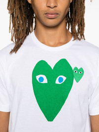 heart-print T-shirt Highlights - White/green - Cotton - Lightweight jersey - Heart print at the chest - Crew neck - Short sleeves - Signature heart patch - Straight hem - When buying this unisex item, keep in mind that it is graded in standard men's sizing. Imported Composition Cotton 100% SIZE & FIT Model measurements Height 6 ft 2 in(1.89 m) Bust/Chest 37.4 in(95 cm) Hips 37.4 in(95 cm) Waist 29.52 in(75 cm) FittingInformation This piece is unisex – expect a slim fit if you usually select men's sizing; expect a looser fit if you usually select women's sizes Made from a midweight non-stretch fabric, this piece offers minimal elasticity when worn Measurement CHEST 40.15 in(102 cm) SLEEVE LENGTH 8.26 in(21 cm) LENGTH 26.37 in(67 cm) Shoulder Width 18.11 in(46 cm) Washing instructions Hand Wash