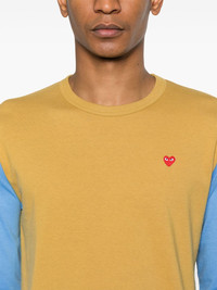 Mini Heart-patch T-shirt Highlights - Mustard yellow/blue - Cotton - Lightweight jersey - Mini heart patch at the chest - Colour-block design - Crew neck - Long raglan sleeves - Straight hem - When buying this unisex item, keep in mind that it is graded in standard men's sizing. Imported Composition Cotton 100% SIZE & FIT Measurement BUST 36.22 in(92 cm) FittingInformation This piece is unisex – expect a slim fit if you usually select men's sizing; expect a looser fit if you usually select women's sizes Made from a midweight non-stretch fabric, this piece offers minimal elasticity when worn